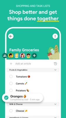 U samoj srži FamilyWalla leže moćne besplatne značajke dizajnirane za olakšavanje obiteljskog života. Dijeljeni obiteljski kalendar omogućuje vam pregled rasporeda svakog člana, ali i cijele obitelji istovremeno, uz pametno kodiranje bojama. Nikada više nećete propustiti važan događaj ili sportsku aktivnost zahvaljujući prilagodljivim podsjetnicima, a vaše postojeće kalendare možete integrirati s lakoćom. Zajedničke popise za kupovinu možete ažurirati u stvarnom vremenu, provjeravati stavke offline i osigurati da se nikada ne zaboravi omiljeno bademovo mlijeko. Kreirajte privatne ili dijeljene popise zadataka, od dječjih obveza do popis pakiranja za putovanje, te ih dodijelite članovima obitelji. Čuvajte i dijelite omiljene recepte, čak ih i uvezite izravno s interneta, pretvarajući svaki obrok u zajedničko iskustvo.