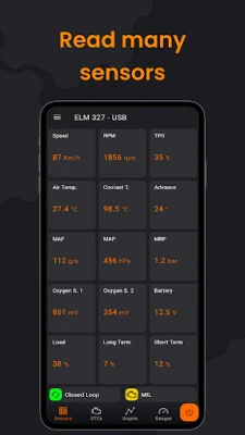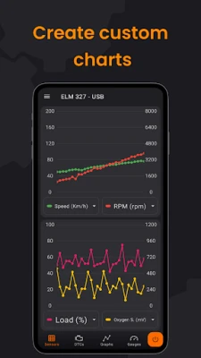Pretvorite svoj mobilni uređaj u napredni dijagnostički centar za vozilo. Ova aplikacija nudi uvid u podatke senzora u stvarnom vremenu, predstavljene u preglednom mrežnom rasporedu. S lakoćom pratite vitalne parametre vašeg automobila, dobivajući trenutačne informacije o njegovom stanju. Za detaljniju analizu, zaslon s grafikonima omogućuje istovremeno praćenje do četiri odabrana senzora, pružajući vam sveobuhvatnu vizualizaciju performansi i rada vašeg vozila.