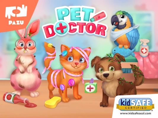 **Pet doctor** s ponosom predstavlja Pazu Games Ltd, renomirani izdavač dječjih igara. Ista tvrtka stoji iza popularnih naslova poput Girls Hair Salon, Girls Makeup Salon i Animal Doctor, koje uživaju povjerenje milijuna roditelja diljem svijeta. Igre iz Pazu Games Ltd obitelji kreirane su posebno za djecu mlađu od 10 godina, nudeći zabavno i poučno iskustvo koje podjednako oduševljava i djevojčice i dječake.