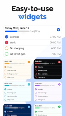 Unaprijedite svoju produktivnost uz provjerene metodologije poput GTD-a (Getting Things Done) i efikasnog vremenskog blokiranja, koje **TaskUp** besprijekorno integrira. Postavite dugoročne ciljeve i pratite svoj napredak, stvarajte detaljne kontrolne liste (checkliste) za potpunu kontrolu nad svakim korakom, te koristite oznake i prioritete za brzu navigaciju i kategorizaciju. Za maksimalnu praktičnost, prilagodljivi widgeti na početnom zaslonu omogućuju vam trenutačni pristup najvažnijim zadacima i podsjetnicima, čineći **TaskUp** nezamjenjivim partnerom u svakom aspektu vašeg života. Doživite slobodu potpune organizacije i motivacije s **TaskUp**.