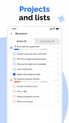 Transformirajte složene projekte u upravljive segmente. **TaskUp** vam omogućuje raščlanjivanje velikih poduhvata na manje, dostižne podprojekte, s jasnim početnim i završnim datumima. Svaki zadatak, bio on dio projekta ili dio vaše dnevne rutine, može se detaljno razraditi u podzadatke, osiguravajući da nijedan detalj ne promakne. Kreirajte, upravljajte i prioritizirajte svoje liste obaveza bez napora, dodajući bilješke i osiguravajući da ste uvijek usredotočeni na ono što je najvažnije. Uz intuitivni kalendar, sve vaše obveze, rokovi i sastanci vidljivi su na prvi pogled, dok sustav podsjetnika brine da nikada ništa ne zaboravite. Planirajte svoj dan i tjedan učinkovito, uključujući i ponavljajuće zadatke, za dosljednu produktivnost.